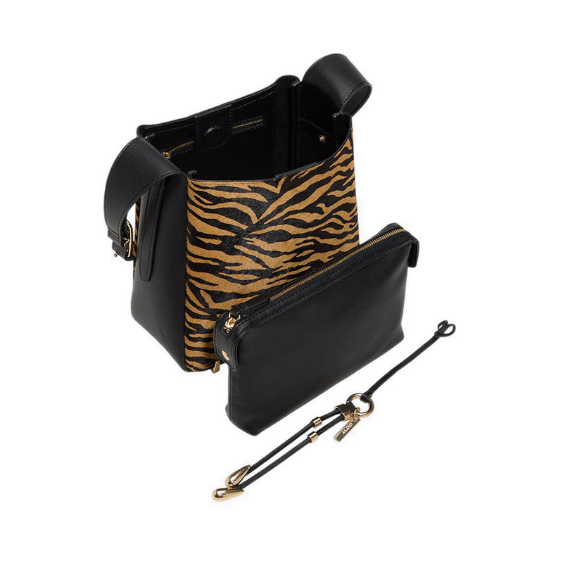 Surprise! This roomy bucket bag comes with a smaller, removable pouch inside for all your goodies, while the slouchy silhouette is soft and polished.
